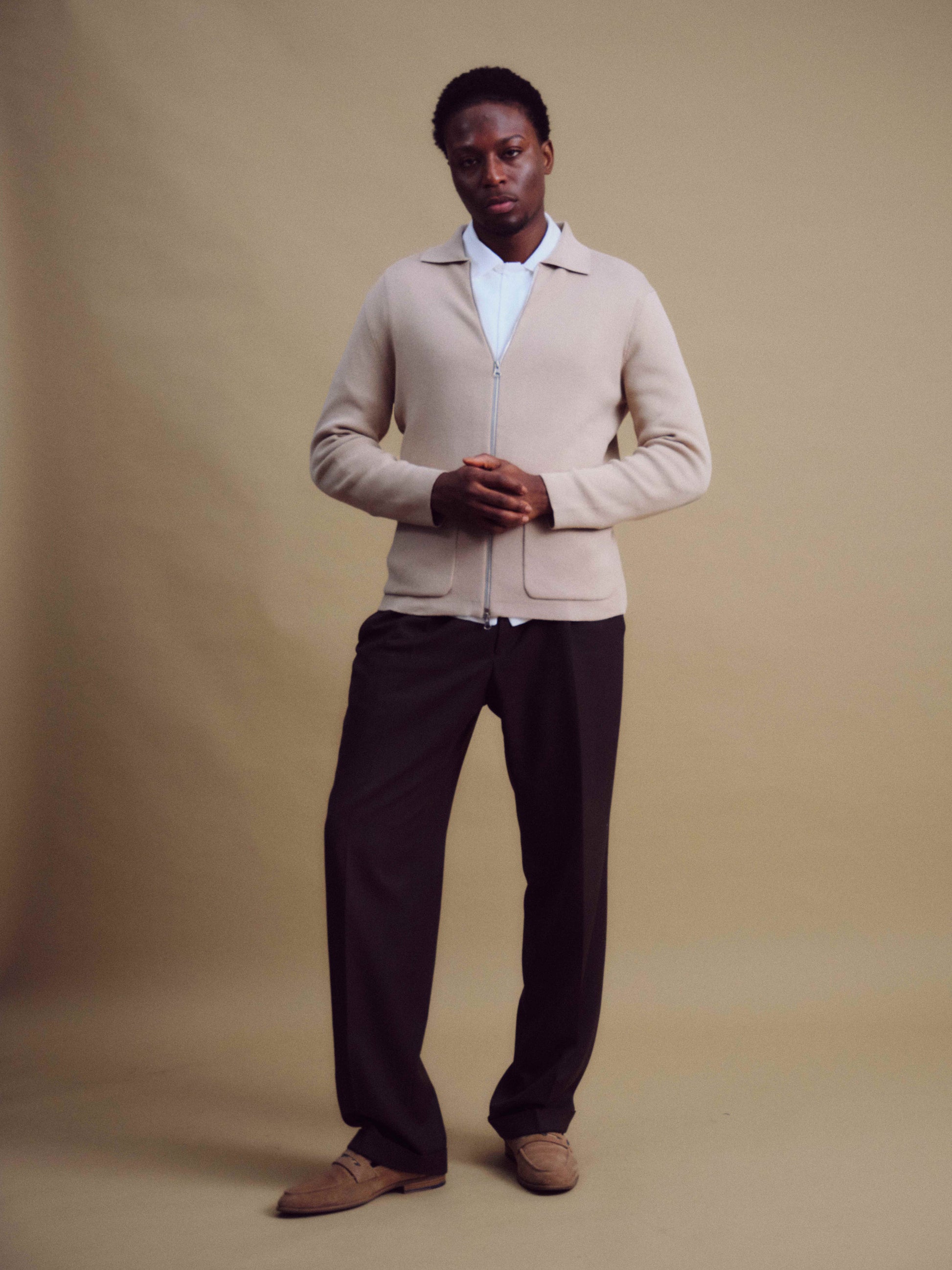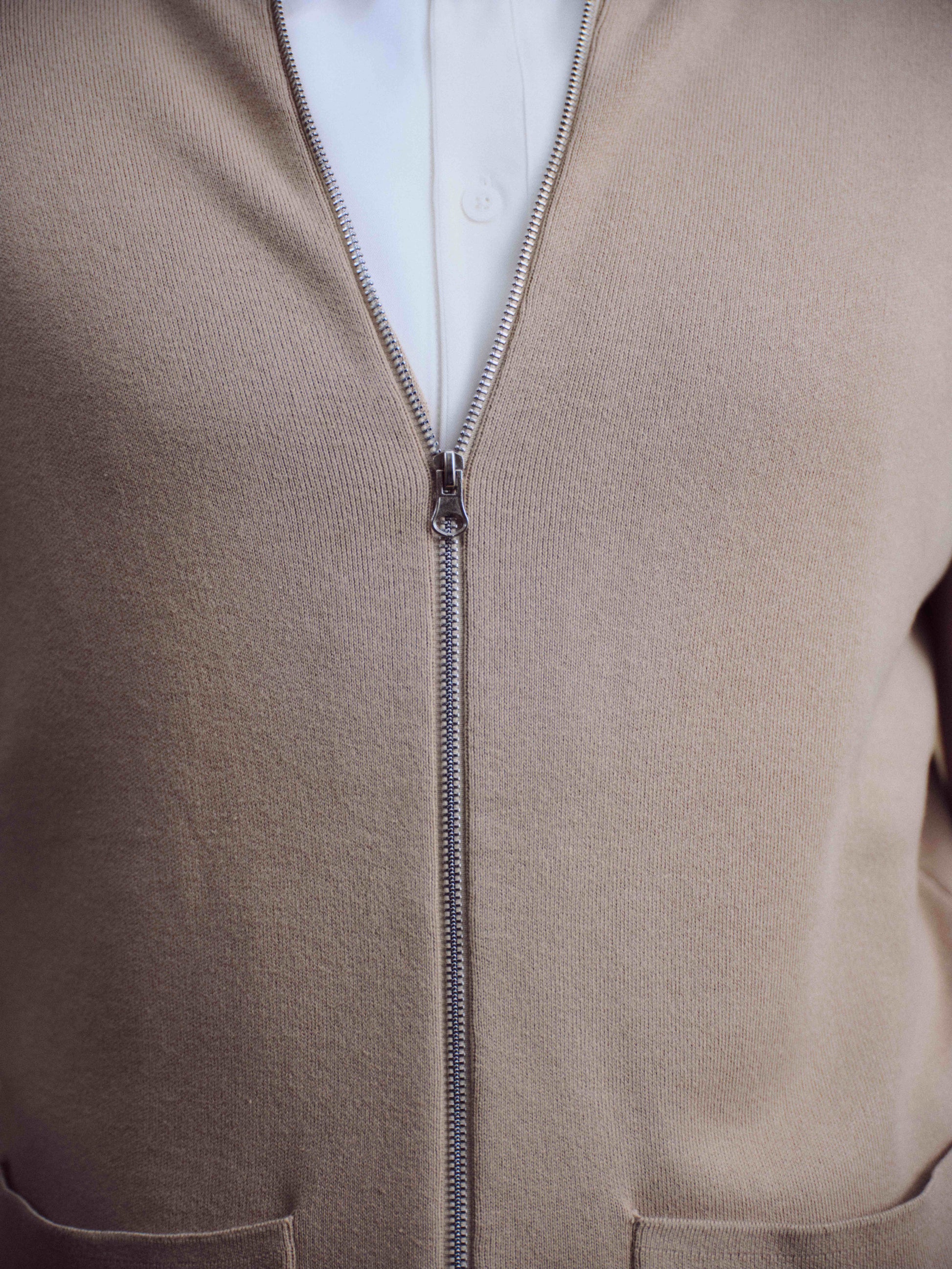 Our Classic Knit Jacket is made from 100% soft cotton, offering timeless style. Featuring a zipper closure and pockets, it combines modern elegance with practical comfort.