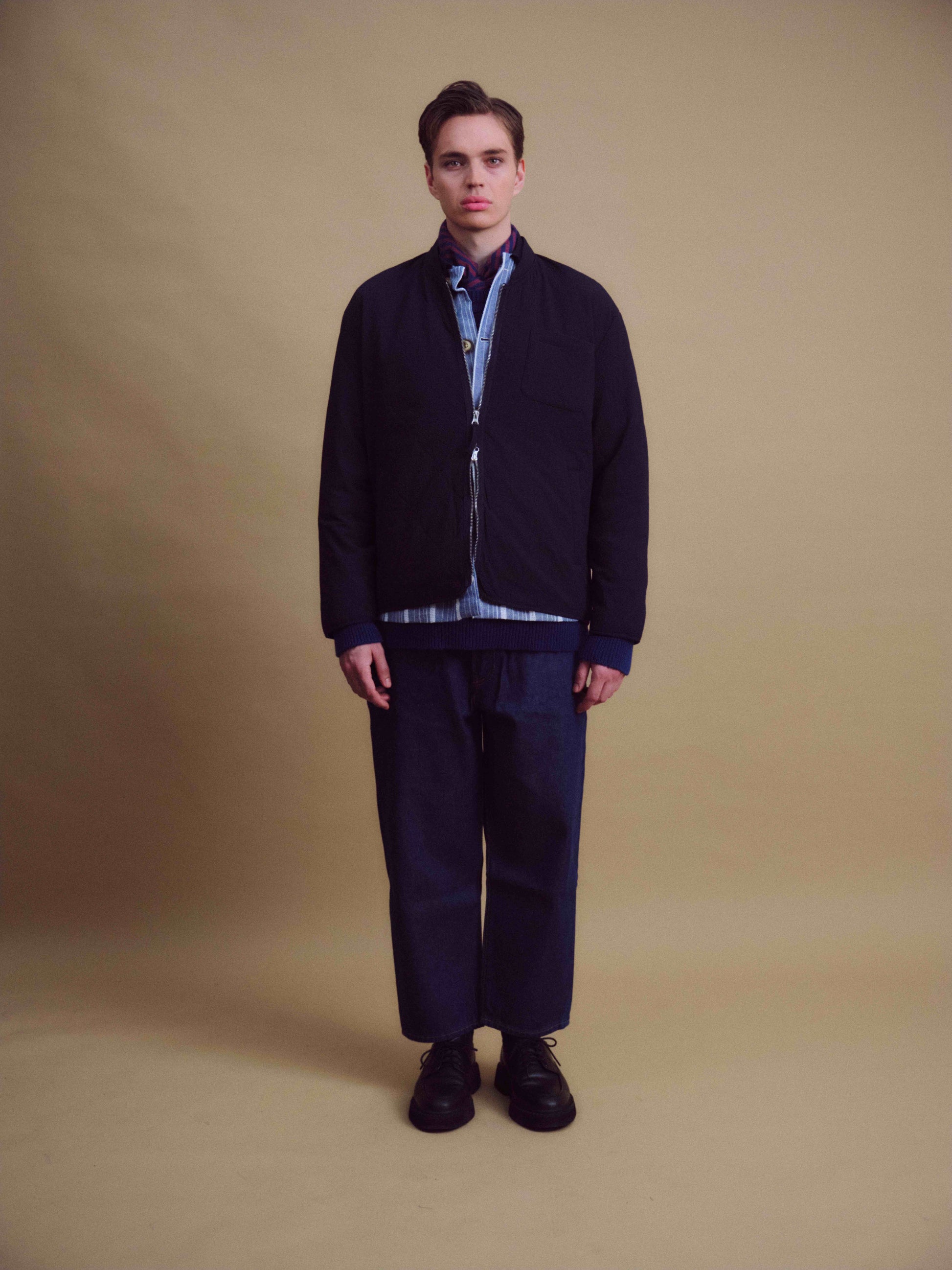 Stay stylish and comfortable with our Lightweight Padded Jacket. This blue zip-up features a chest pocket, zipper closure, and a relaxed fit, perfect for casual outings.